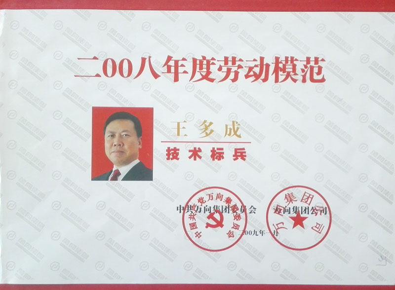 榮獲2008年度萬(wàn)向集團勞動(dòng)模范證書(shū)