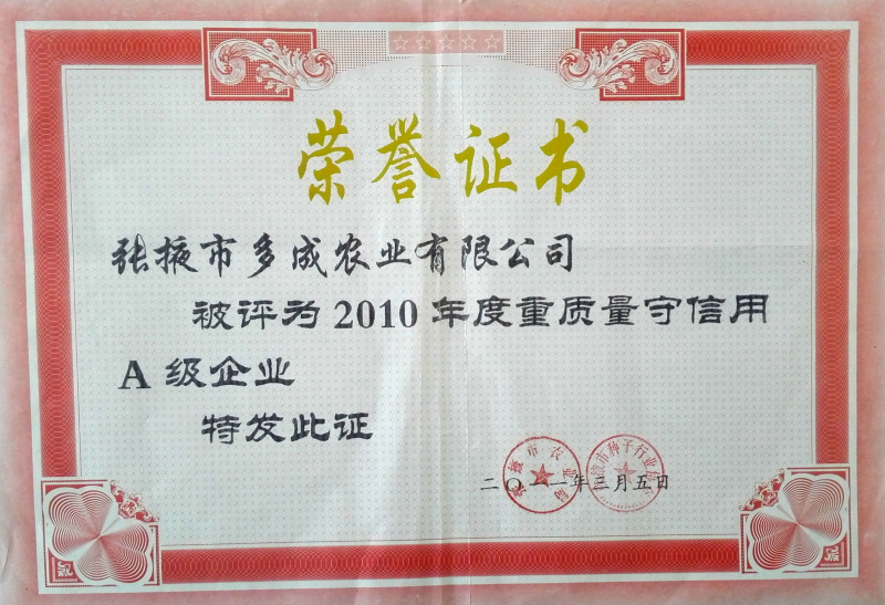 2010年重質(zhì)量守信用A級企業(yè)