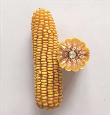 特征特性:幼苗葉鞘紫色,葉片綠色。株型半緊湊,株高232cm,穗位高79cm,全株葉片數15-17片,雄穗分枝數4-6個(gè),花藥黃色,穎殼綠色,花絲紫色;穗錐形,穗軸紅色,穗長(cháng)14.6cm,穗粗4.5cm,軸粗2.6cm,穗行數14,行粒數33粒;籽粒黃色、半馬齒型,千粒重323.6g,出籽率89.3%;成株根系發(fā)達,莖稈堅韌,抗倒伏。高抗瘤黑粉病、莖基腐病和絲黑穗病,中抗大斑病。甘肅春播生育期90-95天,屬極早熟品種。適宜在海拔1800m以下,≥10℃有效積溫達2200℃以上,雨量充沛或有灌溉條件的西北春播區種植。 產(chǎn)量表現:2015年品比試驗在密度6000株/畝下,平均畝產(chǎn)達899kg;8000株/畝下,平均畝產(chǎn)達947kg。 |